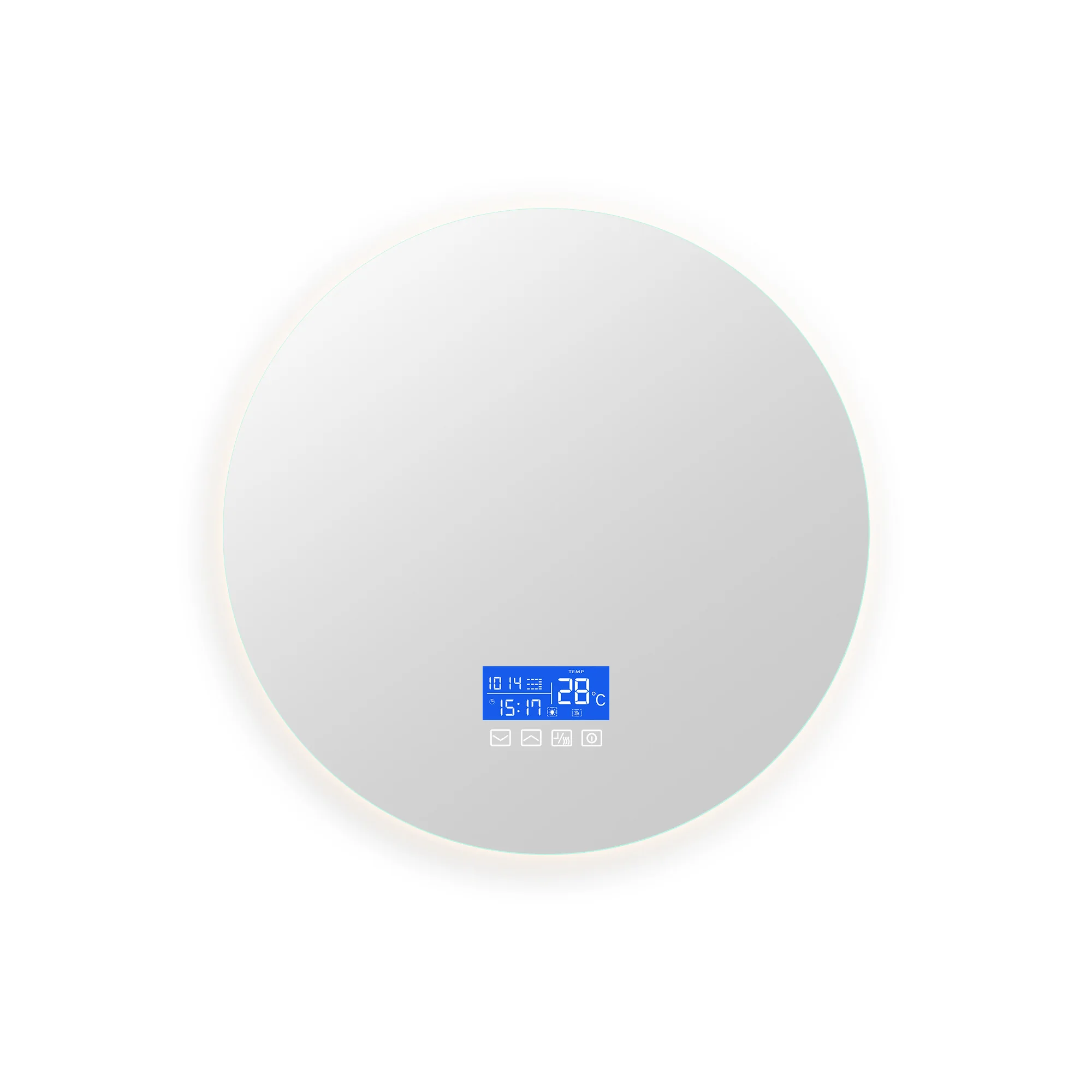 ANAJQAQIA Okrągłe LED Lustro Łazienkowe 60x60 cm – Z Funkcją Anti-condens, Wyświetlaczem Temperatury i 3 Regulowanymi Poziomami Jasności