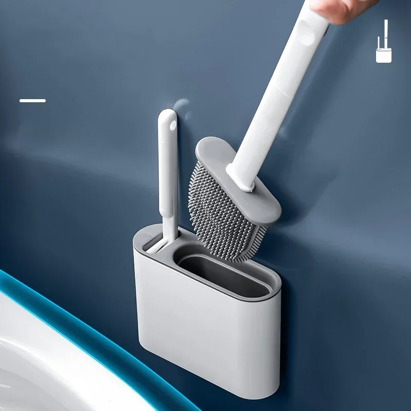 Zestaw Silikonowej Szczotki Toaletowej FlexiClean – Płaska Głowica, Elastyczna i Higieniczna – Montaż Ścienny do Toalety i Łazienki