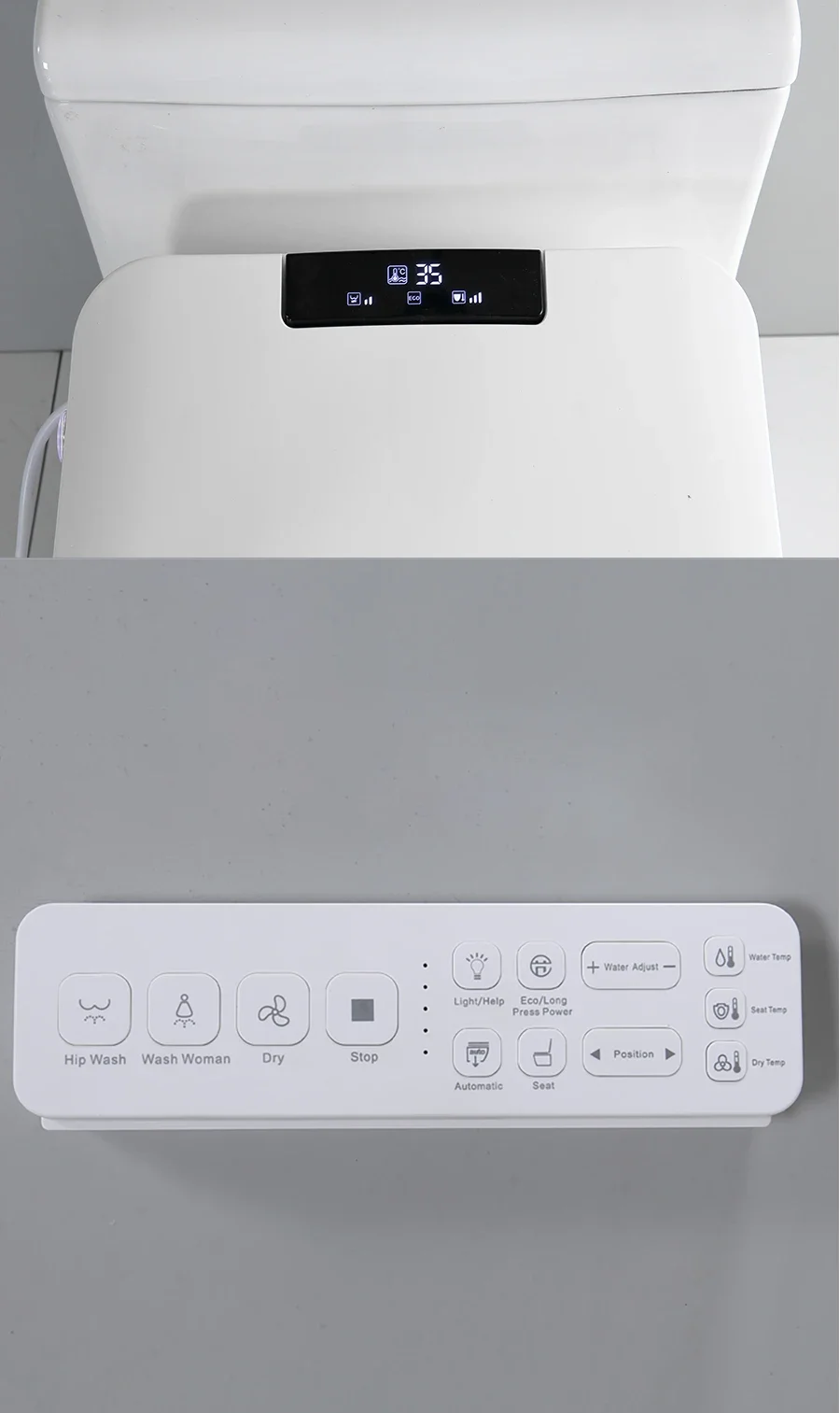 Kwadratowy design idealnie pasuje do nowoczesnych toalet, a funkcjonalna konstrukcja zapewnia maksymalną kontrolę dzięki wygodnemu pilotowi zdalnego sterowania i bocznym panelom sterującym.