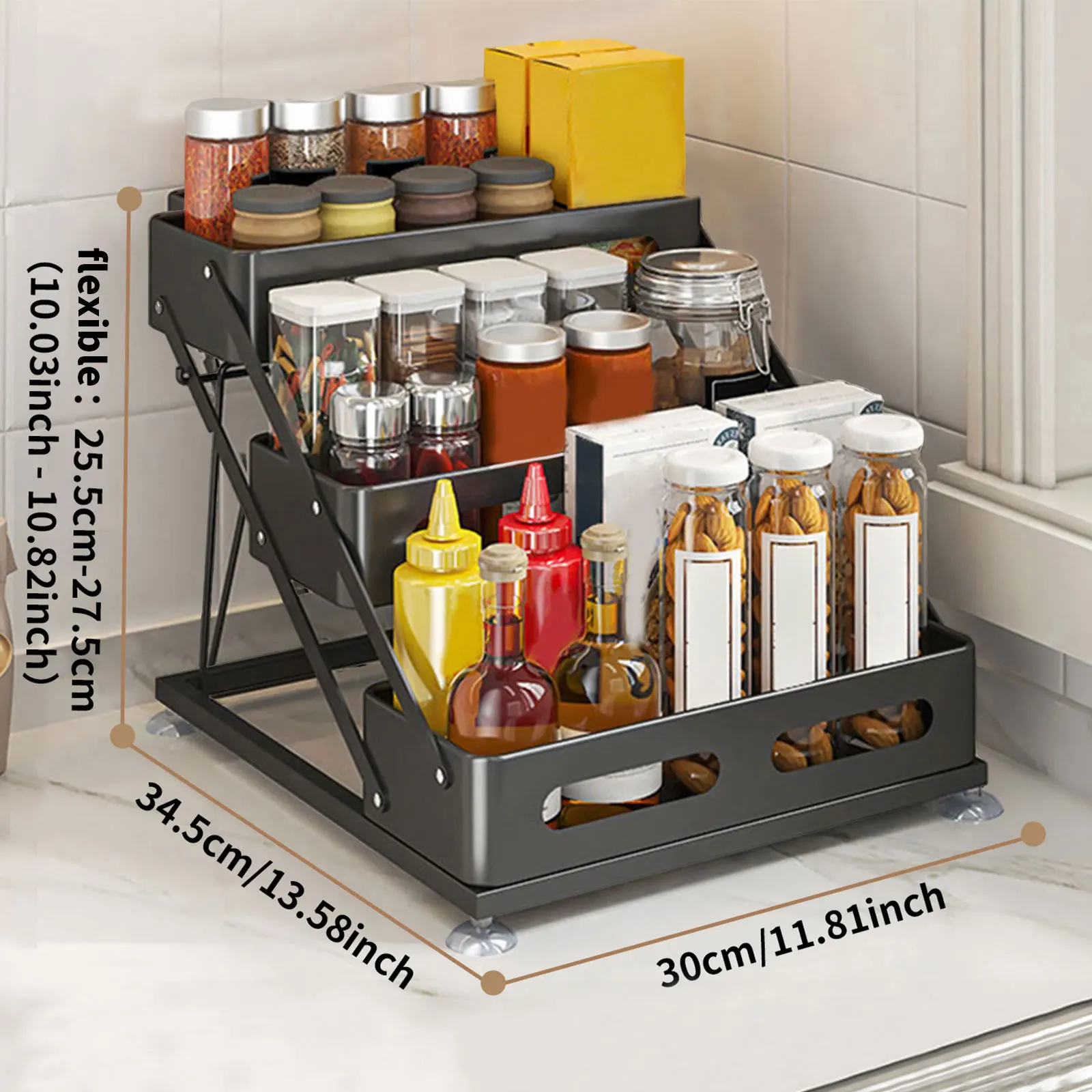 Wielofunkcyjny design: Idealny do blatu, narożników, szafek lub spiżarni – wszystko schludnie w jednym miejscu.